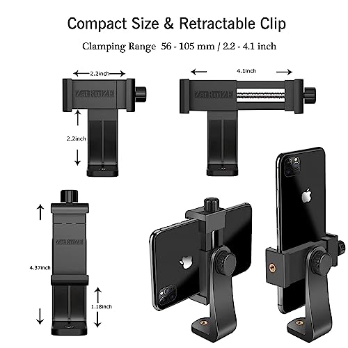 - Elevate your photography game with the ZatRuiZE Tripod Mount – a versatile Cell Phone Tripod Holder Clip designed for all smartphones and phablets measuring between 56mm and 105mm in width. Whether you're shooting stunning landscapes or capturing cherished moments with friends, this mount ensures you achieve the perfect angle every time. The full 360-degree rotation feature allows seamless transitions between portrait (vertical) and landscape (horizontal) modes, making it easier than ever to frame your shots just right.