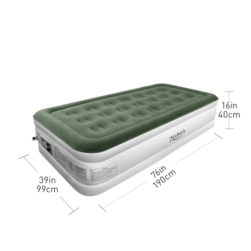 Zearna 190x100x40cm Single Inflatable bed, Air Mattress with Built-in Electric Pump, Blow Up Mattress in 3 Mins Self-Inflation/Deflation,Flocked Surface Guest Airbed for Home Portable Camping