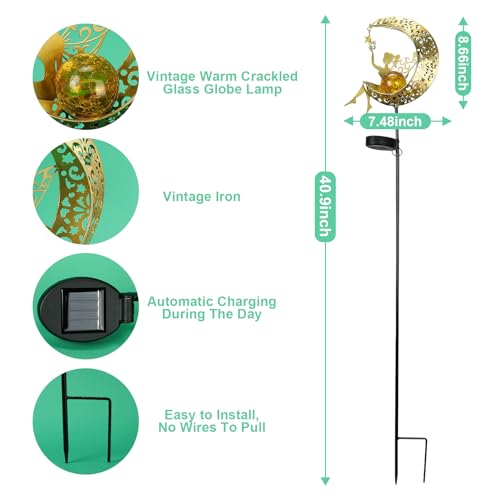 If you're looking to add a touch of magic to your garden, the ZKLiLi Solar Fairy Light is the perfect choice. This stunning garden decoration features a whimsical butterfly fairy perched on a crescent moon, coupled with an enchanting crackle glass globe that lights up beautifully at night.